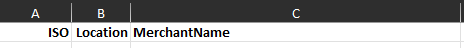 - Columns A-G— includes ISO ID, Location ID, Merchant Name, $ Volume (Debits/Credits), Quantity (Debits/Credits).