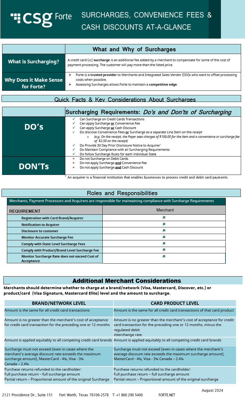 Surcharges, Convenience Fees and Cash Discounts - At a Glance